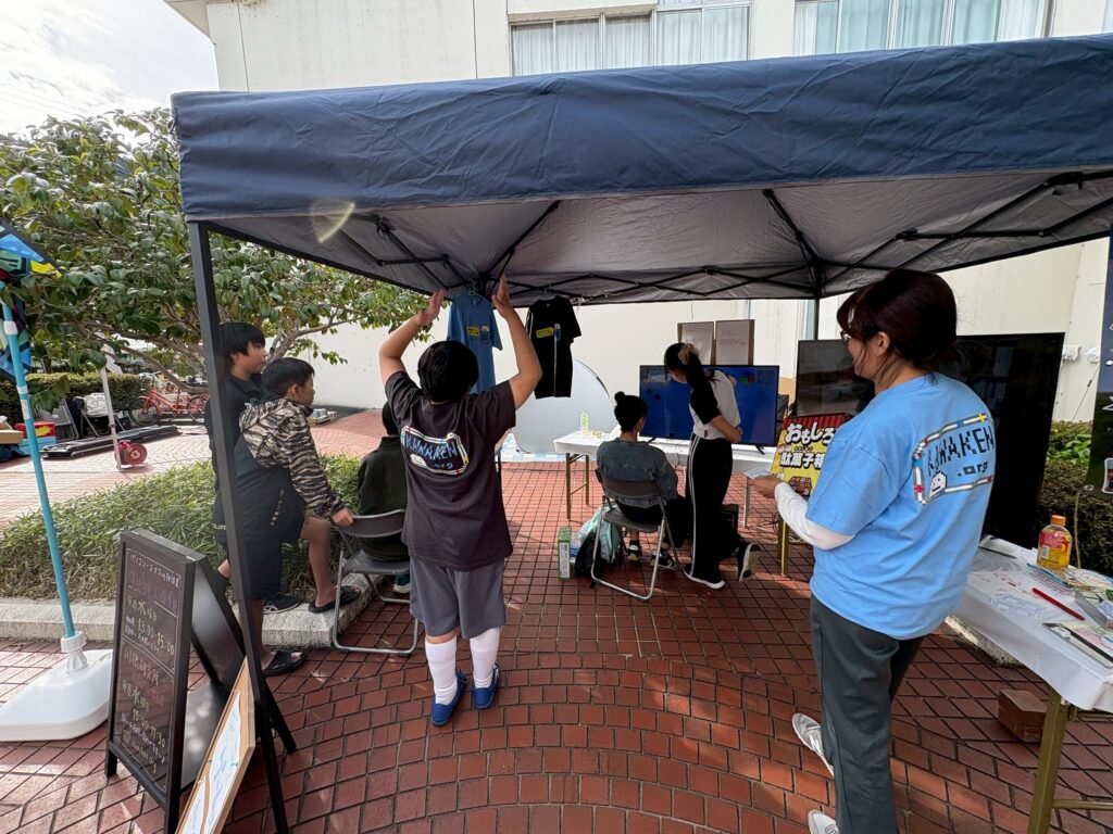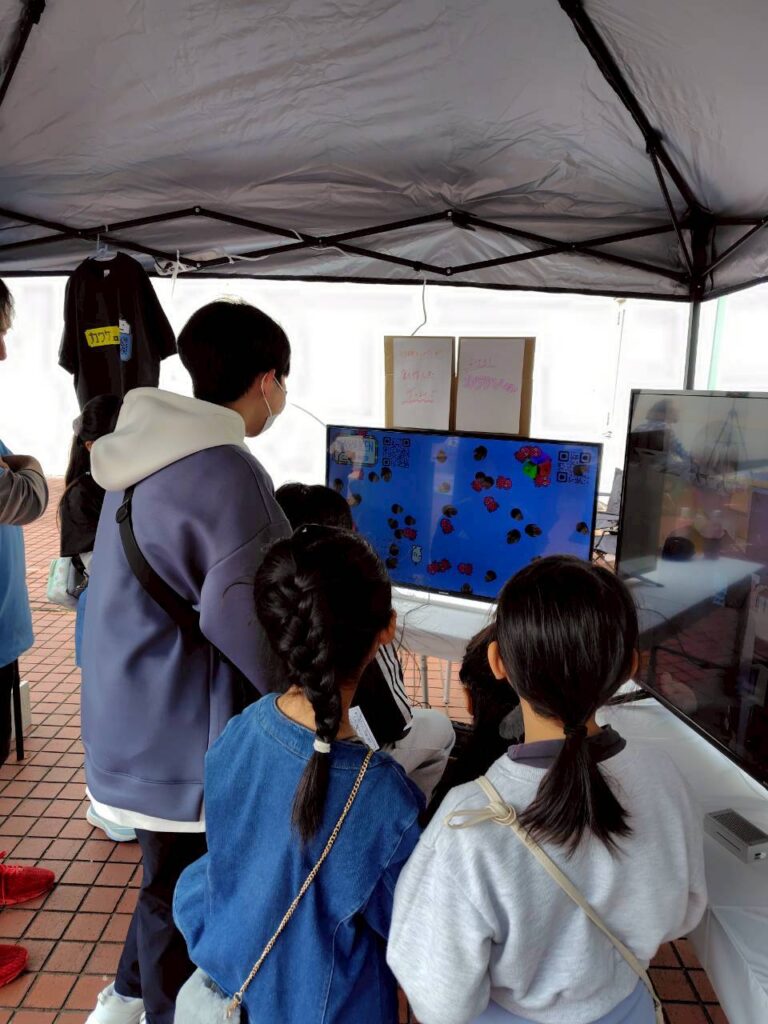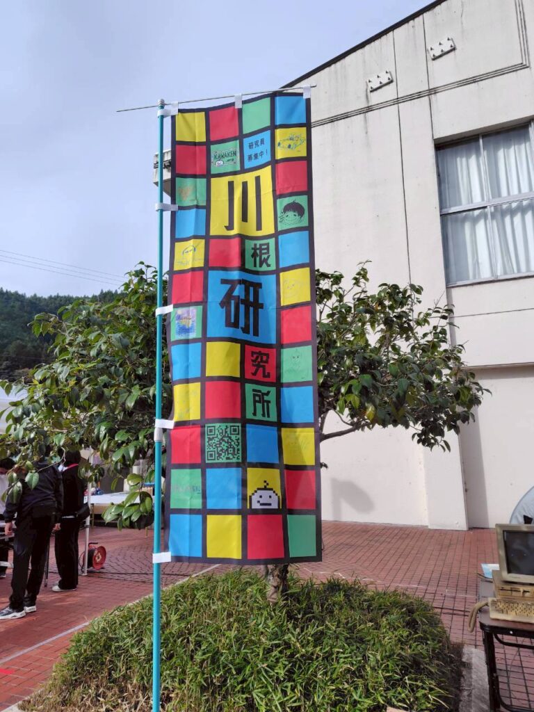 2025年11月2日(日)、川根研究所は初めて地域のイベントに出展しました。町内唯一のインターネットサービスの会社であるCBBS株式会社さんが、私達の活動に興味を持ってくださり、お声がけくださったことから今回の出展が実現しました。町内の飲食店や企業などが約50ブースほど並ぶ中、研究員が協力して制作したゲーム、サイネージ、ポスターとのぼりを展示。この日に向けて、カワケンTシャツも作成!約130人がブースに遊びに来てくれました。