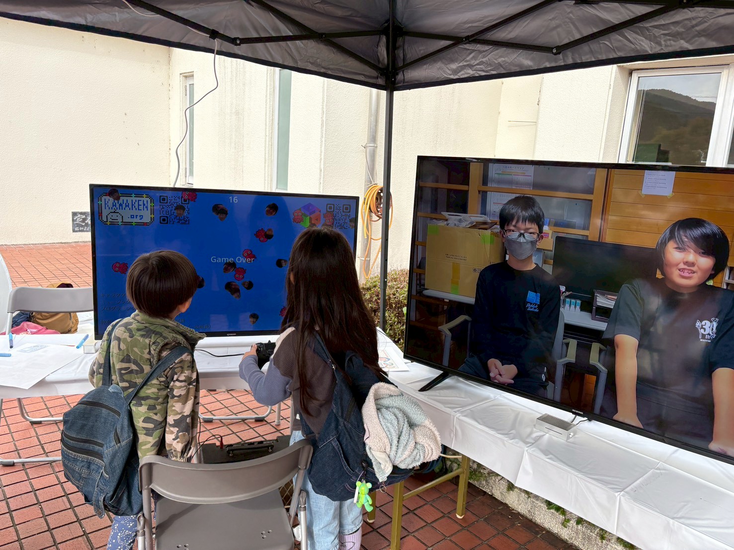 2025年11月2日(日)、川根研究所は初めて地域のイベントに出展しました。町内唯一のインターネットサービスの会社であるCBBS株式会社さんが、私達の活動に興味を持ってくださり、お声がけくださったことから今回の出展が実現しました。町内の飲食店や企業などが約50ブースほど並ぶ中、研究員が協力して制作したゲーム、サイネージ、ポスターとのぼりを展示。この日に向けて、カワケンTシャツも作成!約130人がブースに遊びに来てくれました。